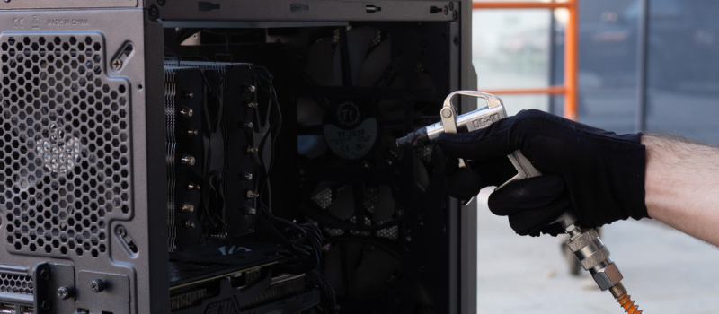 - Процесс чистки блока питания: продуйте блок питания сжатым воздухом.
