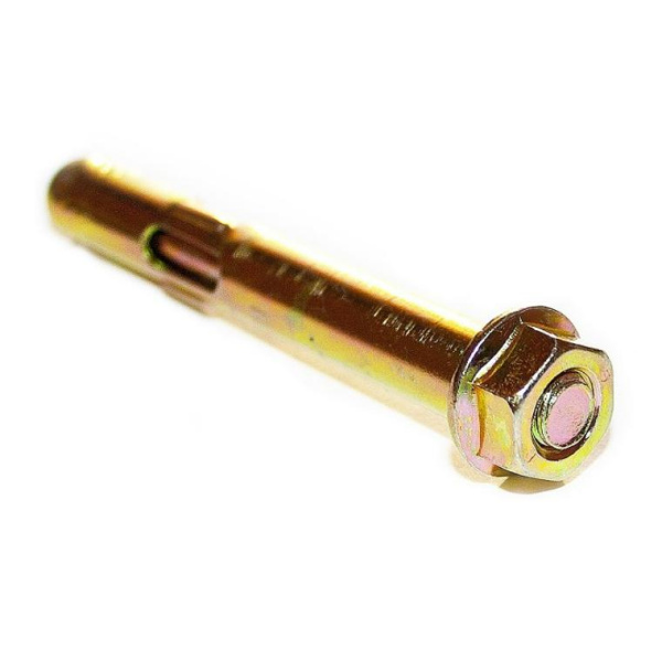 Анкерный болт с гайкой М8 10х65,представляет собой цилиндрическую гильзу состоящую из трех элементов, на одном конце которой находится конусный элемент с шпилькой. При закручивании гайки, конусная часть анкера расширяет элементы гильзы, позволяя ей крепиться в основании.
